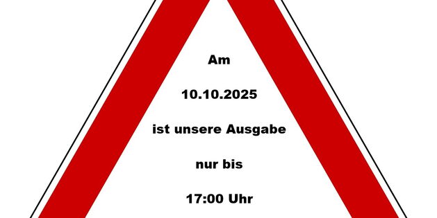 Da wir am 10.10.2025 unsere jährliche Mitgliedersammlung haben, ist die Ausgabestelle ab 17:00 Uhr geschlossen!