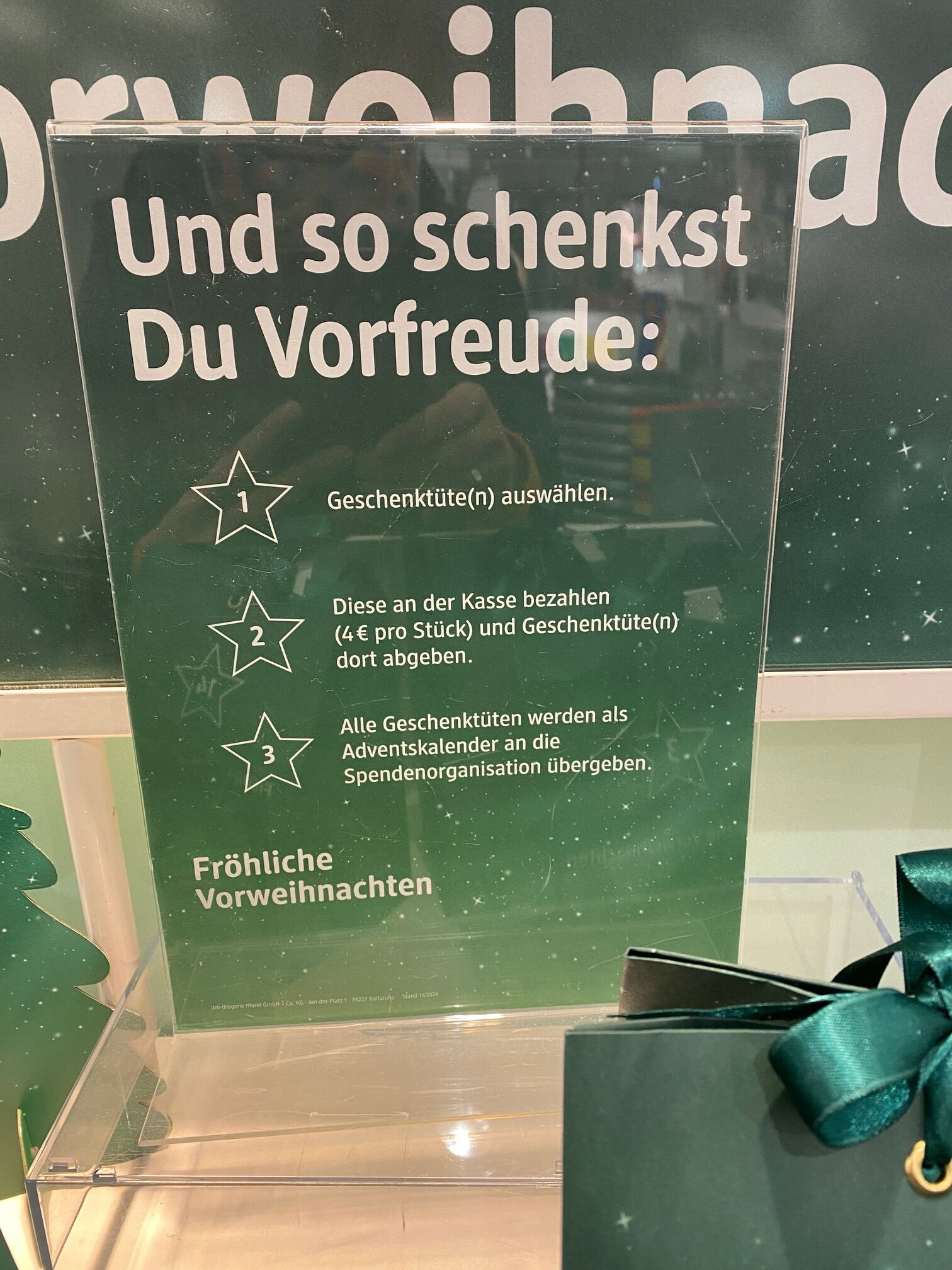 Die Tüten einfach an der Kasse bezahlen. dm sammelt sie dann wieder für uns ein und legt zum Ende der Aktion noch etwas dazu.