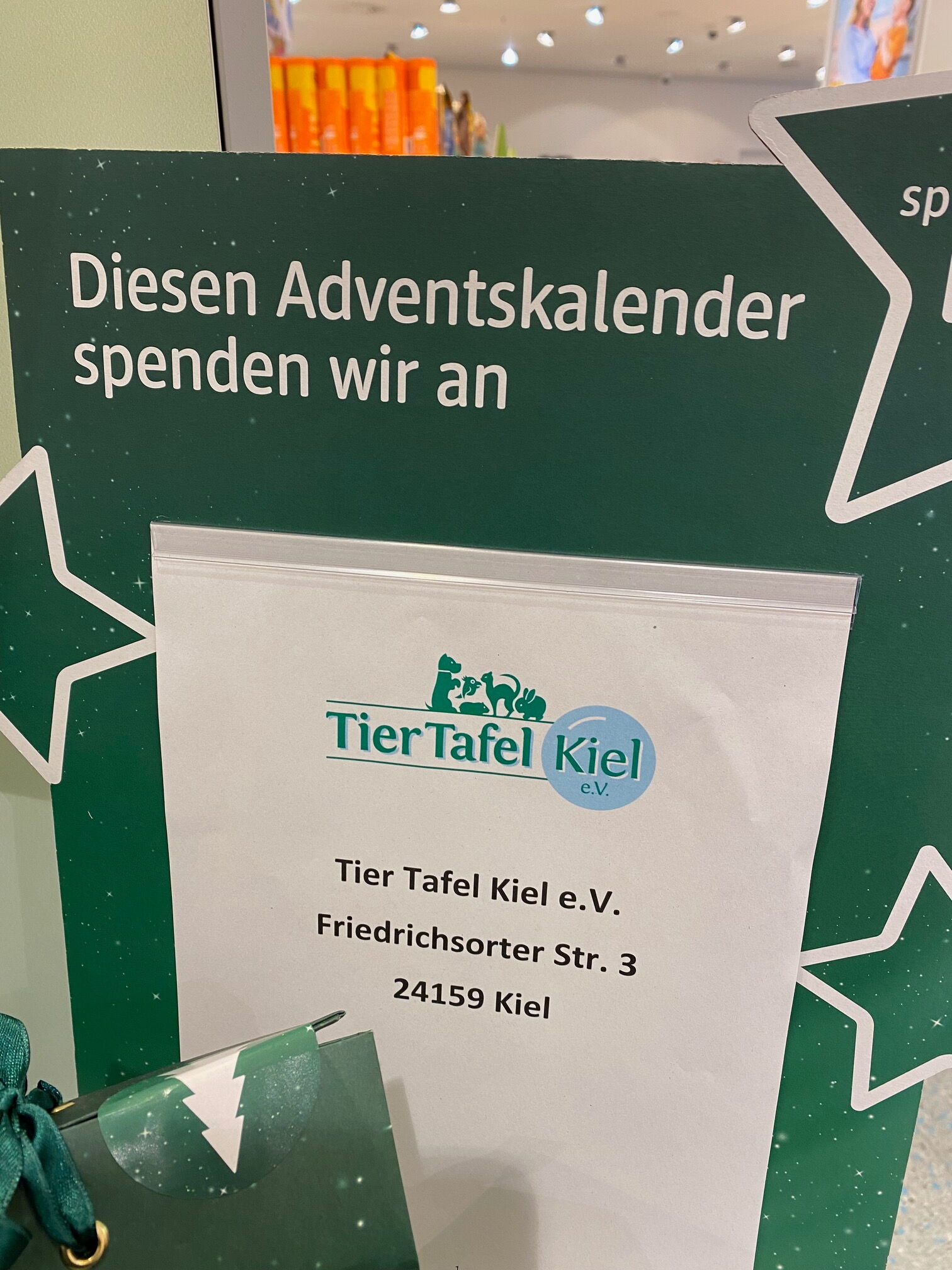Gleich am Eingang könnt ihr Adventstüten zu Gunsten der TierTafel Kiel erwerben. Eine Tüte kostet 4,00 Euro und enthält Futter für Hunde, Katzen und Nager.