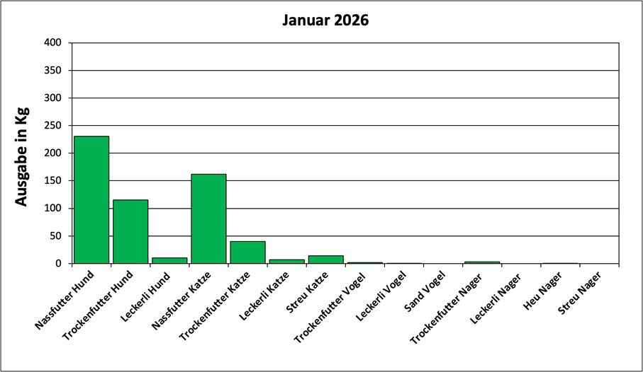 Den Grafiken können Sie entnehmen, wie viele tierische Kunden bei uns waren und wie viel an Futter- und Sachspenden ausgegeben wurde.