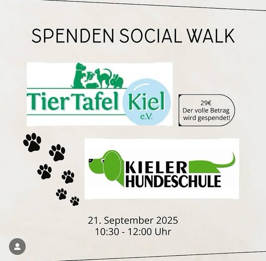 Wir freuen uns auf zahlreiche Anmeldungen per Mail unter info@kieler-hundeschule.de, da nur eine begrenzte Teilnehmeranzahl möglich ist, meldet euch zeitnah an, ihr erhaltet dann eine Bestätigungsmail, wir teilen euch zudem hier mit, sobald der Social Walk ausgebucht ist.